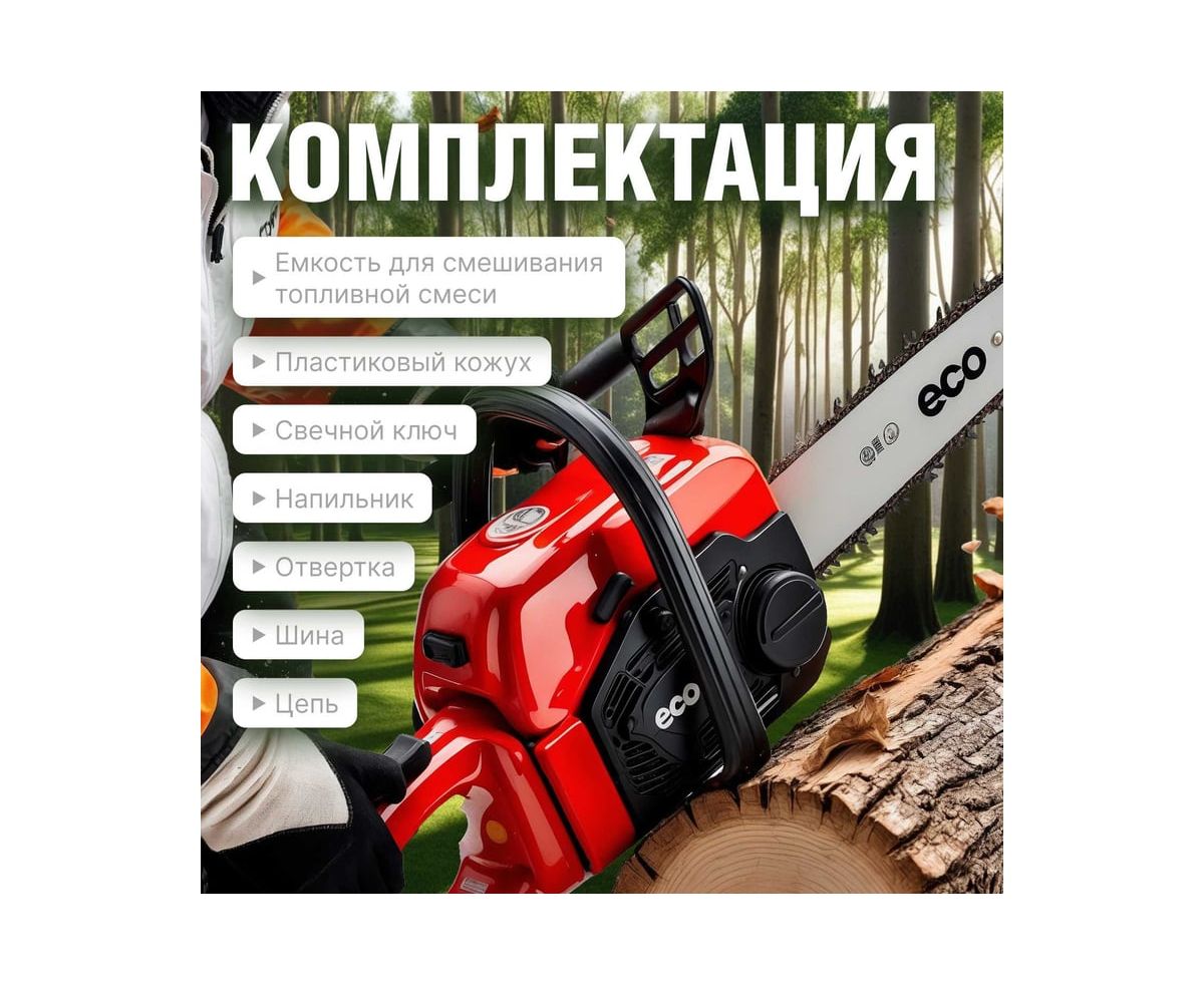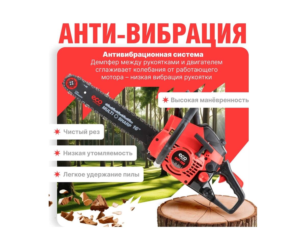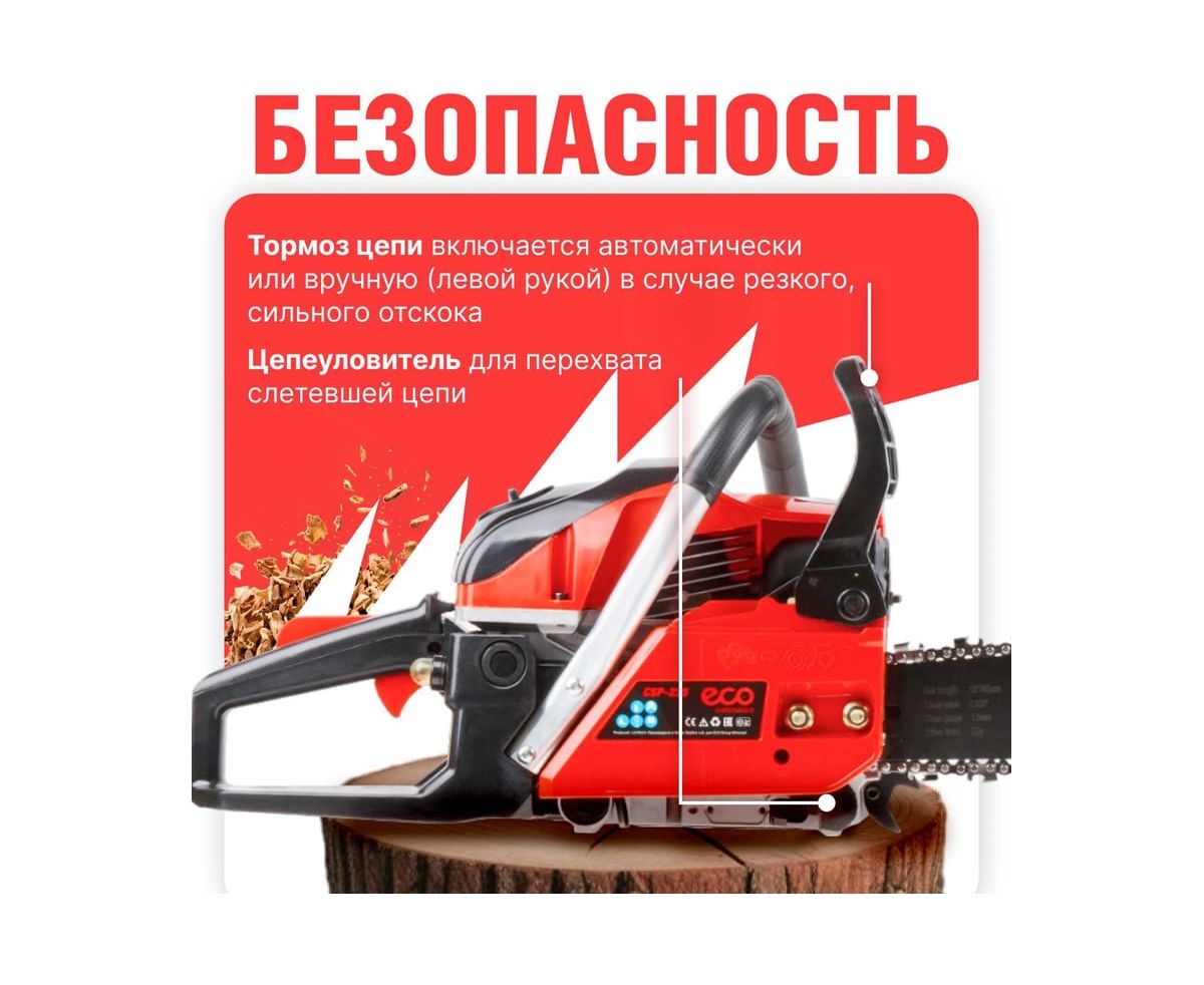 Небольшой вес, достаточная мощность и высокая скорость позволяют качественно и легко использовать бензопилу в различных условиях от заготовки дров до работы в саду. Надежный мембранный карбюратор.
