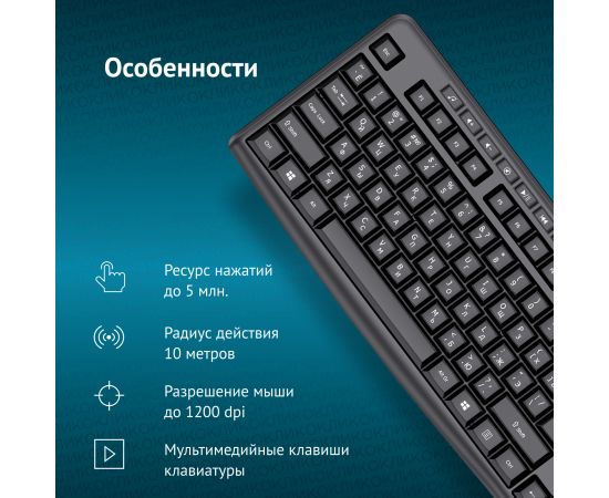 Особенности - Беспроводная клавиатура с продуманной эргономичной конструкцией для работы дома и в офисе. Девайс оборудован регулируемыми по высоте ножками. Дополнительные мультимедийные и офисные клавиши обеспячат быстрый доступ и управление нужными приложениями.