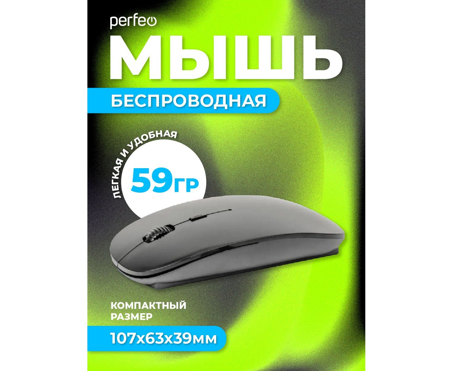 Беспроводная мышь Perfeo, оптич. "NO NAME-2", 3 кн, 1600DPI, USB / BULK / чёрный