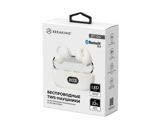 Беспроводная стереогарнитура Breaking BT-04 Clips, LED, Bluetooth 5.3 (Бежевый)
