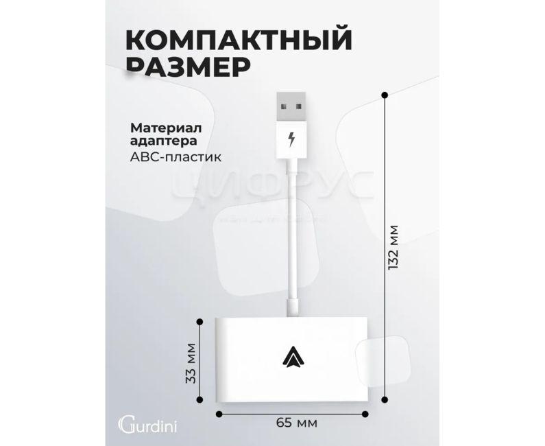 Беспроводной адаптер Gurdini Android Auto USB-A + OTG белый 915570