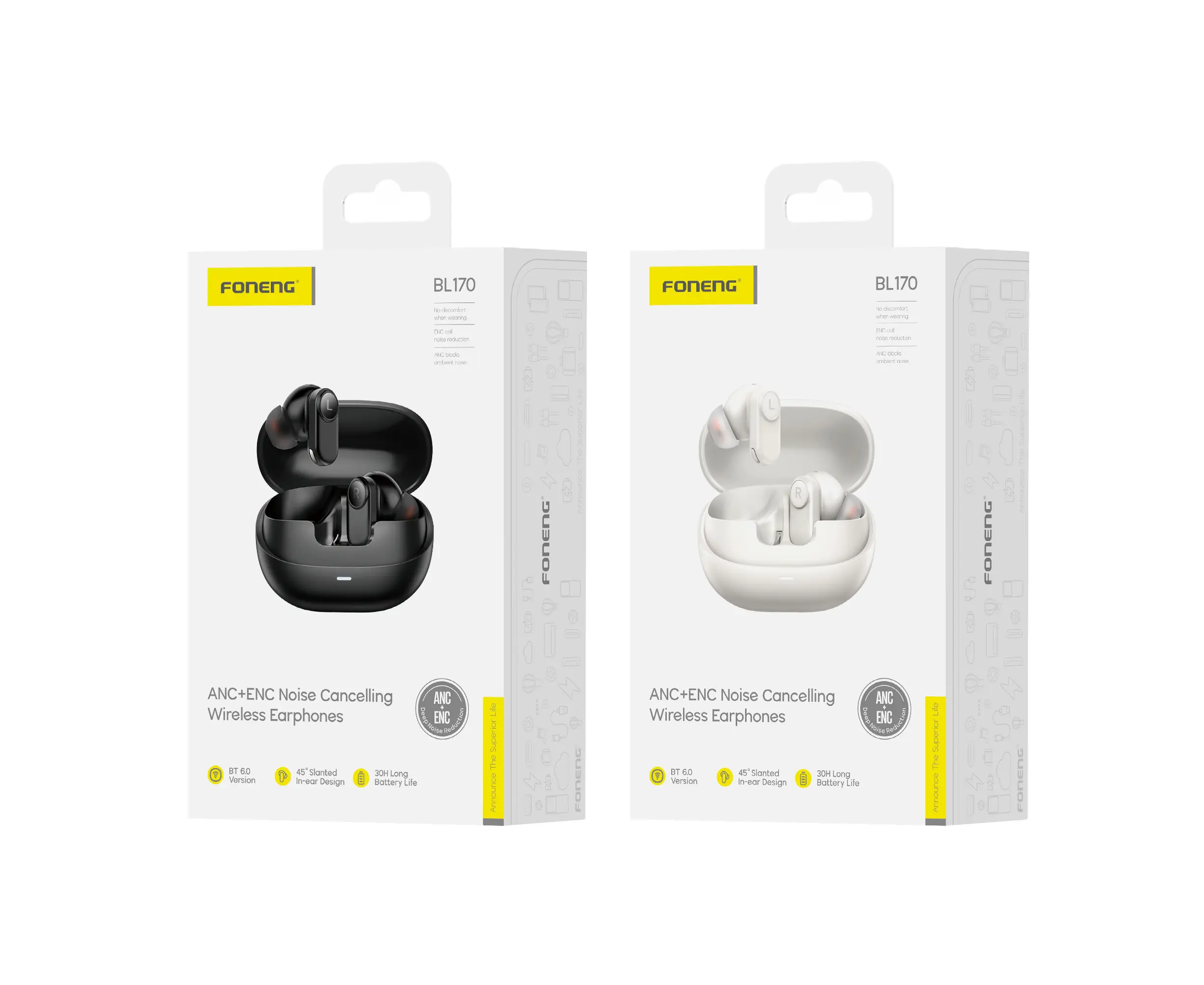 Беспроводные Bluetooth-наушники Foneng BL170 ANC+ENC Noise Canceling TWS (White)