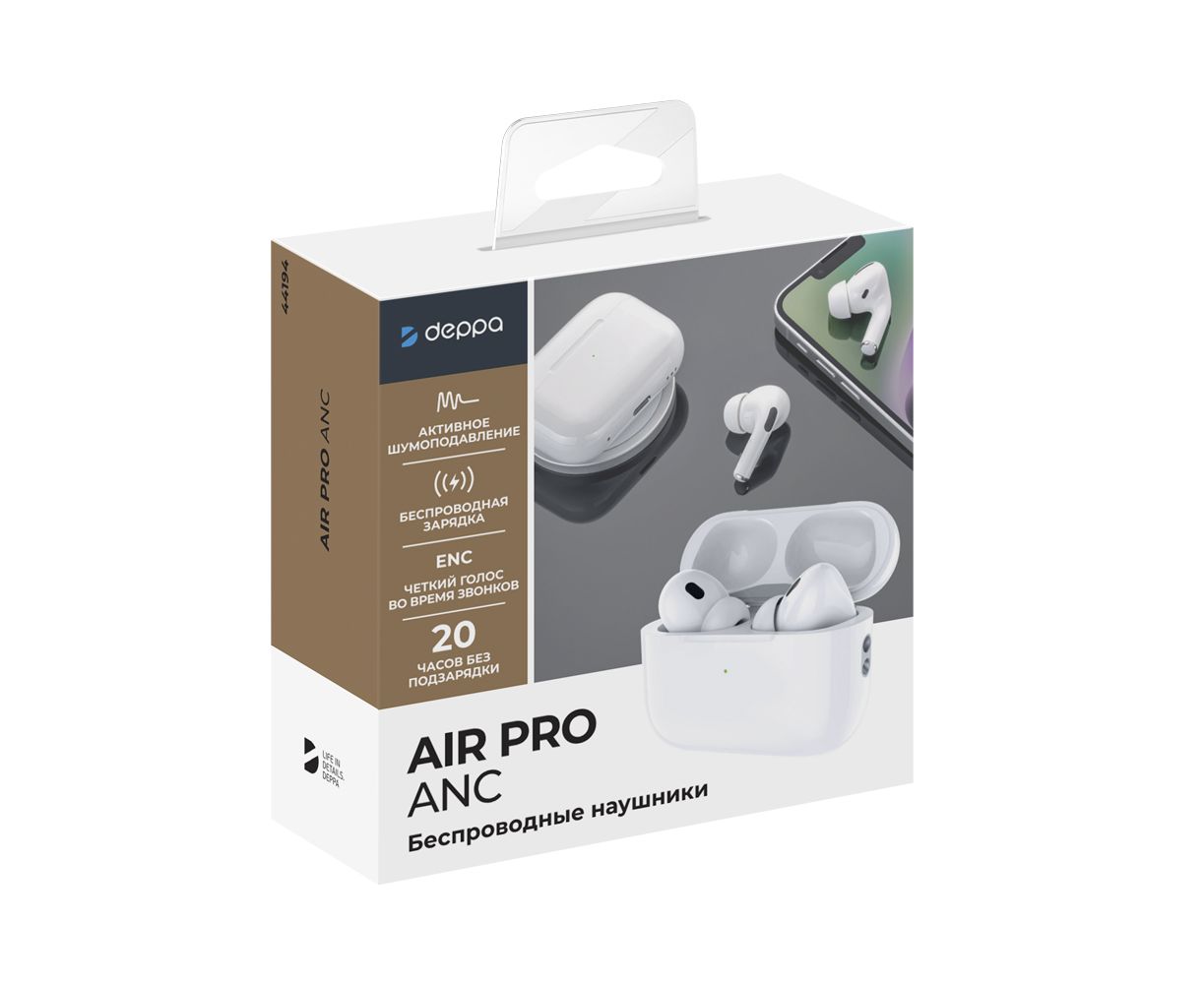 Беспроводные наушники с микрофоном Air Pro ANC, TWS, BT 5.2, 300 мАч, ANC, QI, белый, Deppa, 44194