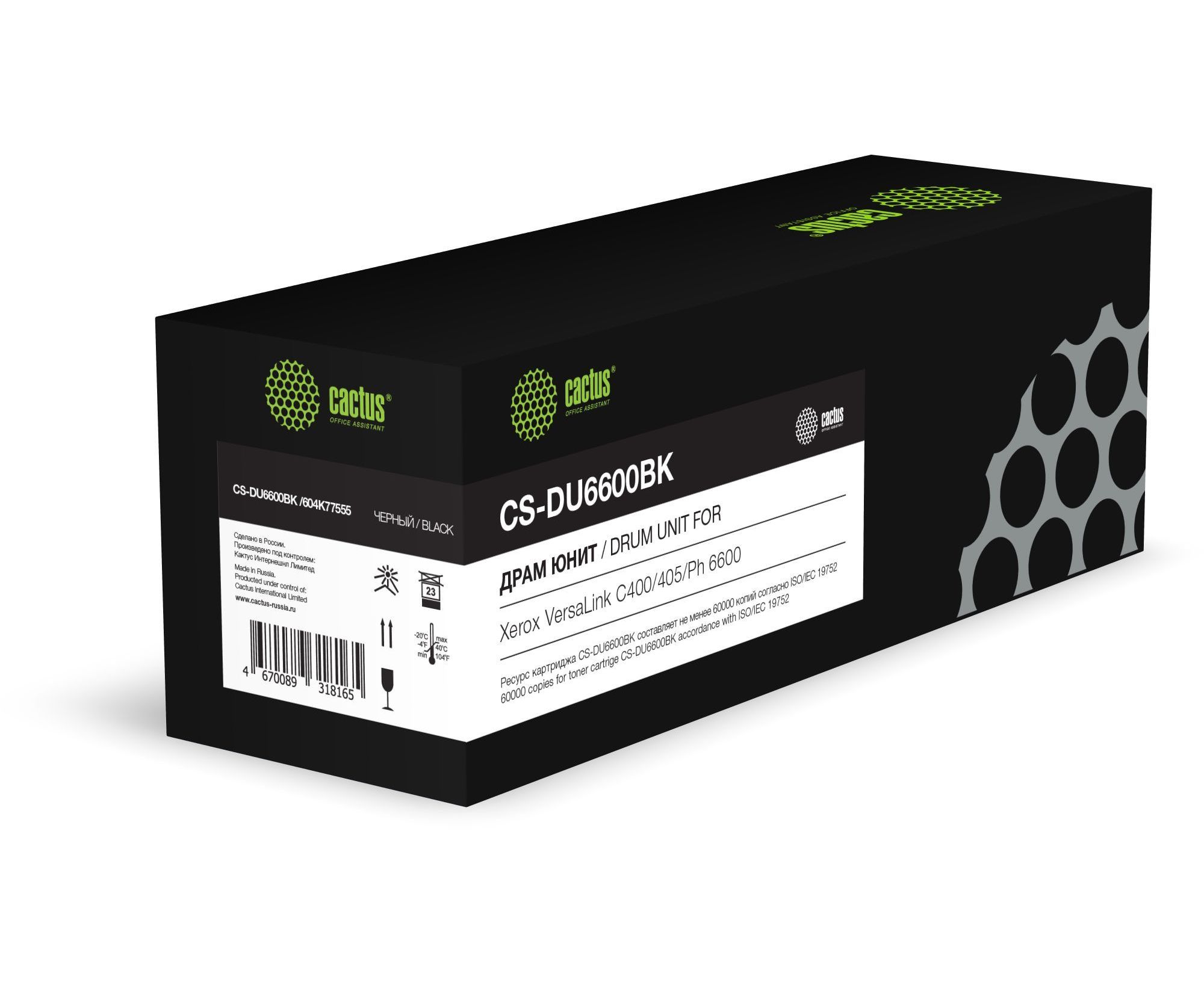 Блок фотобарабана Cactus CS-DU6600BK 604K77555 черный ч/б 60000стр. для VersaLink C400/405/Ph 6600 Xerox
