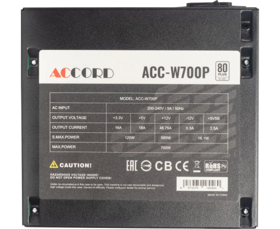 Блок питания Accord ACC-W700P ATX 700W 80 Plus White (20+4pin) 120mm fan 6xSATA RTL