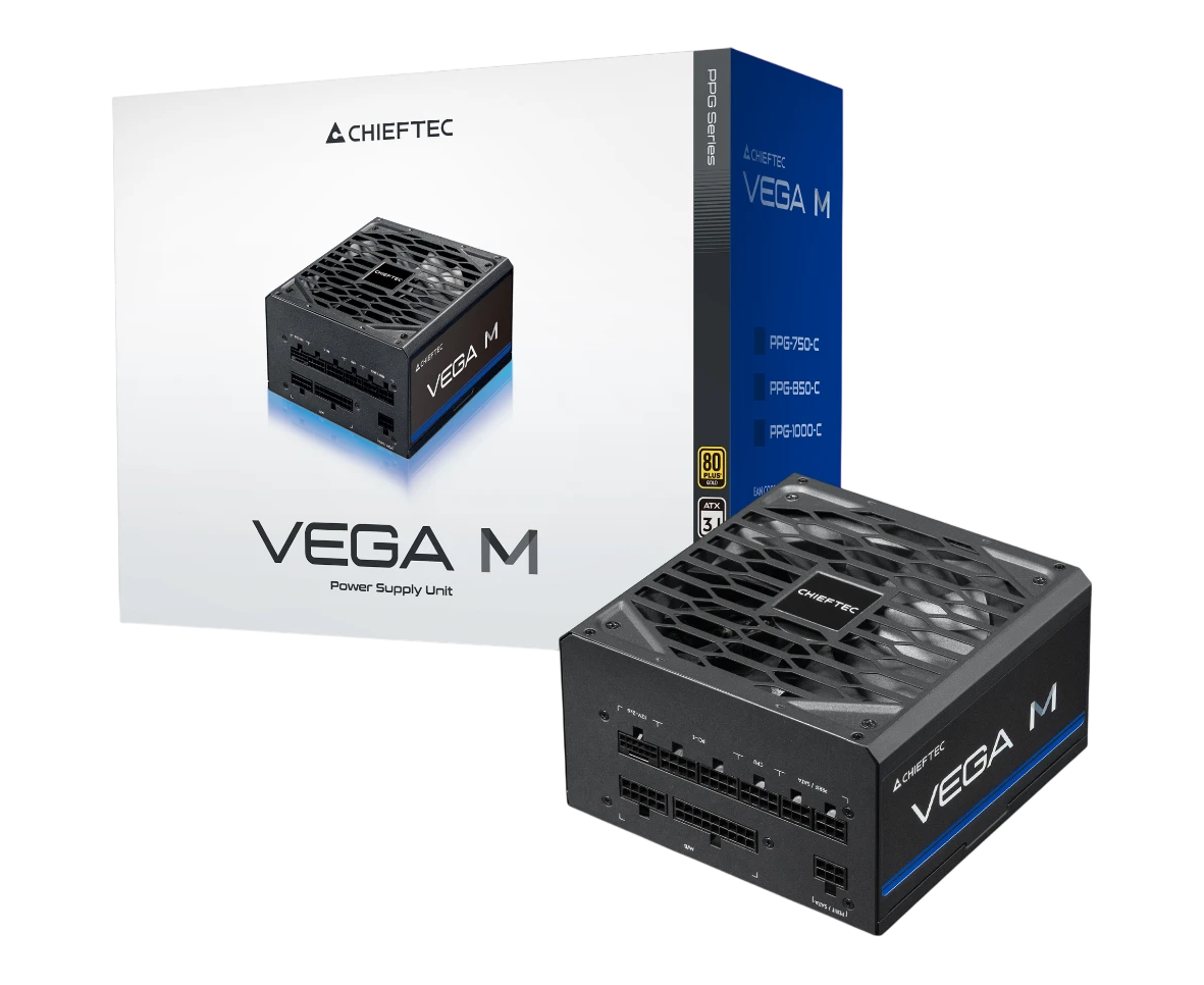 Блок питания Chieftec Vega M PPG-1000-C (ATX 3.1, 1000W, 80 Plus Gold, Active PFC, 135mm fan, Gen5 PCIe, Full Cable Management) Retail