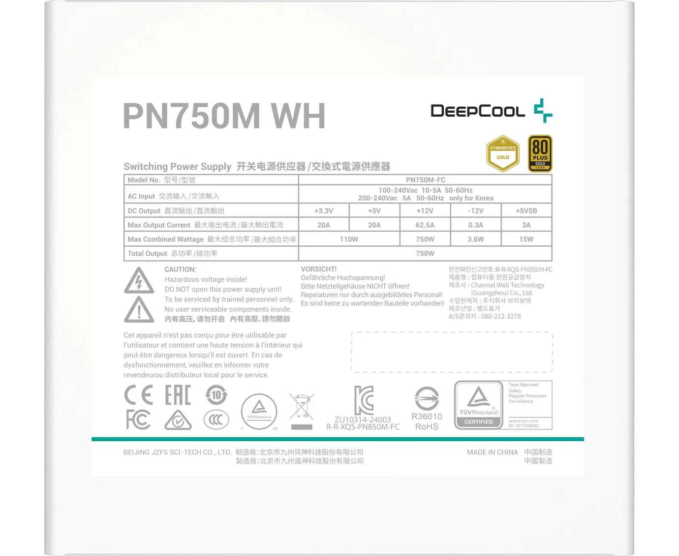 Блок питания Deepcool Game Storm PN750M WH V2 Gen.5 (R-PN750M-FC0W-WGEU) ATX 750W 80+ gold (20+4pin) APFC 120mm fan 8xSATA RTL