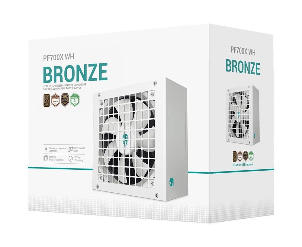 Блок питания Deepcool Gamerstorm PF700X WH (ATX 2.52, 700W, PWM 120mm fan, Active PFC+DC to DC, 80+ Bronze, белый) RET