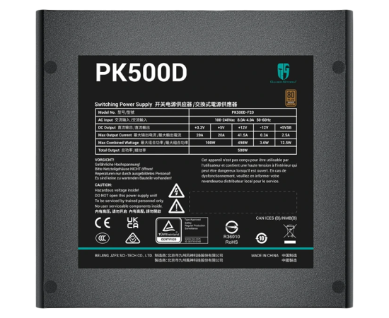 Блок питания Deepcool GamerStorm PK500D (ATX 2.4, 500W, PWM 120mm fan, Active PFC+DC to DC, 80+ Bronzer) RET