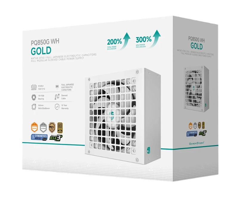Блок питания Deepcool GamerStorm PQ850G WH (ATX 3.1, 850W, Full Cable Management, PWM 120mm fan, 80+ Gold, Active PFC + Half Bridge + DC/DC, Full Jap)