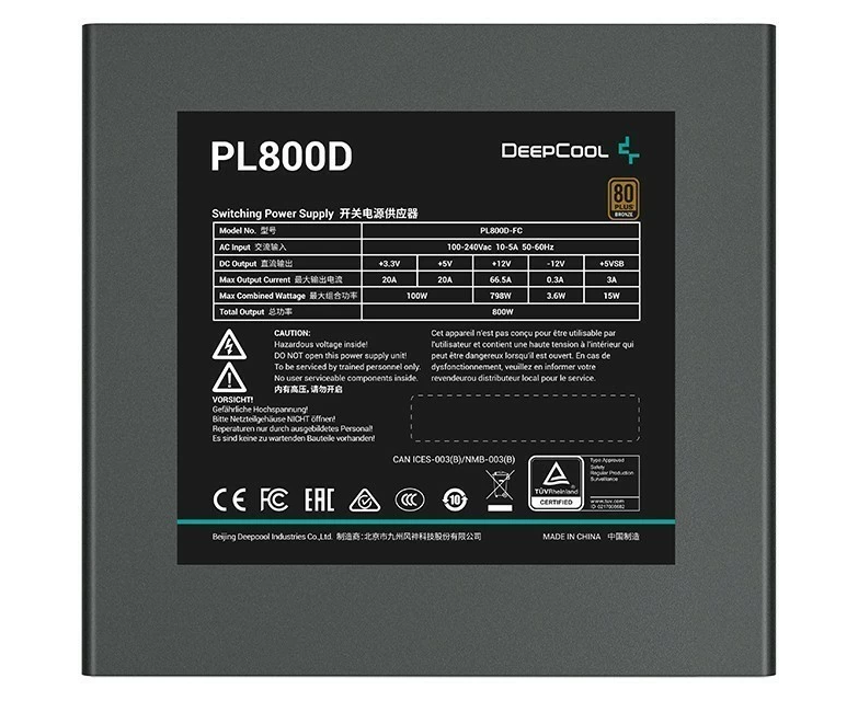 Блок питания Deepcool PL800D (ATX 3.0, 800W, PWM 120mm fan, Active PFC+DC to DC, 80+ Bronze) RET