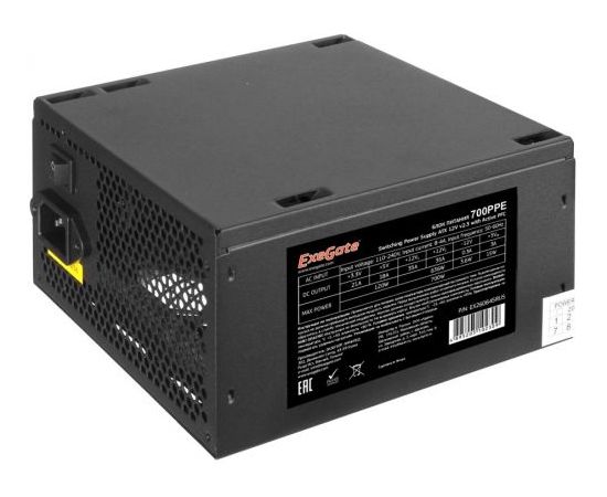Блок питания ExeGate EX260645RUS-PC 700W 700PPE, ATX, PC, black, APFC, 12cm, 24p+(4+4)p, PCI-E, 5xSATA, 3xIDE, FDD + кабель 220V