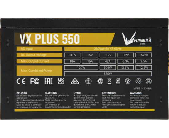 Блок питания Formula AC VX Plus (VX Plus 550W) ATX 550W (20+4pin) 120mm fan 3xSATA RTL
