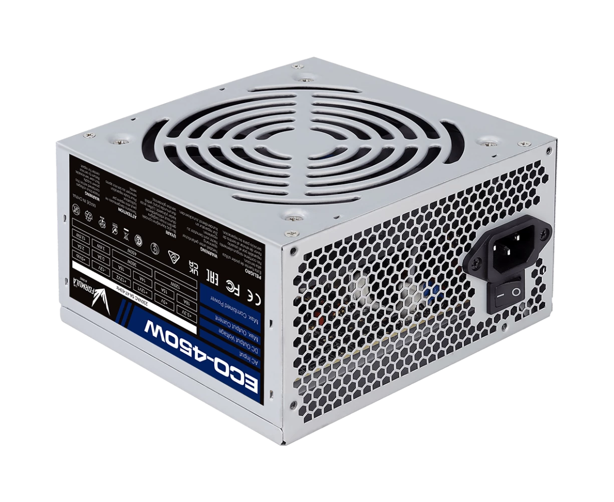Блок питания Formula Eco-450W (ATX v2.3, 20+4P, 4P, 1xPCIe 6P, 2xSATA, 2xPATA, 1xFDD, 12cm fan)