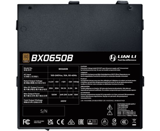 Блок питания LIAN LI RB PSU, 650W, 80+ Bronze, ATX3.1 (BX0650B) (G9P.BX0650B.B000.RU