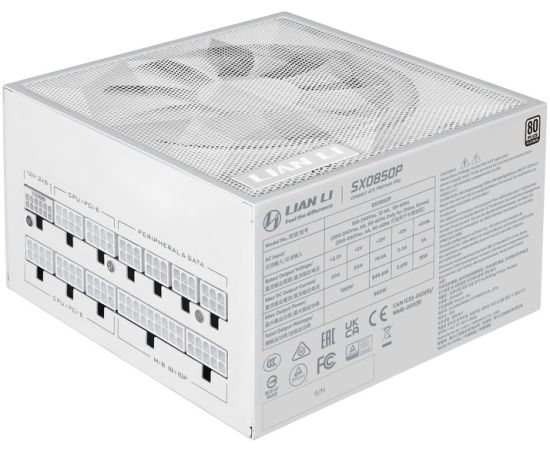 Блок питания Lian Li SX0850P (G9P.SX0850P.W000.RU) / White / ATX 3.1, 850W, 80 Plus Platinum, PCIe 5.1, APFC, 120mm FDB Fan, Fully Modular
