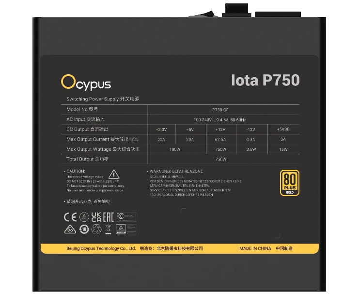 Блок питания Ocypus Iota P750 (Iota-P750-G1FFBK024X-EU) 750W (ATX, 80+ Gold, APFC, 20+4 pin, 120mm fan, PCI-E 6+2Px3, 8xSATA)