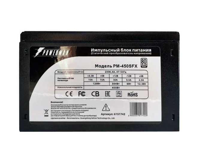 Блок питания Powerman PM-450SFX (6151742) 450W 80+ (8cm fan)