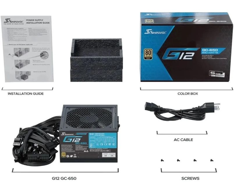 Блок питания Seasonic G12 GC-650 (g12 gc-650 ssp-650rt2), 650Вт, 120мм, черный, retail