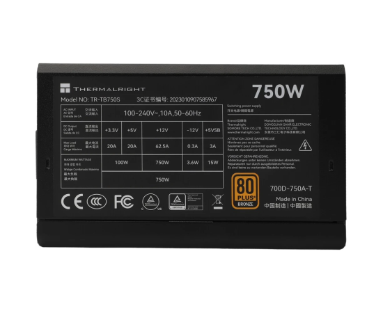 Блок питания Thermalright TR-TB750S 750W 80+ Bronze (ATX, 3, PCIe 5.0, Non-modular, 1x24(20+4)pin 550mm, 1xCPU*2 8(4+4)pin 600+150mm)