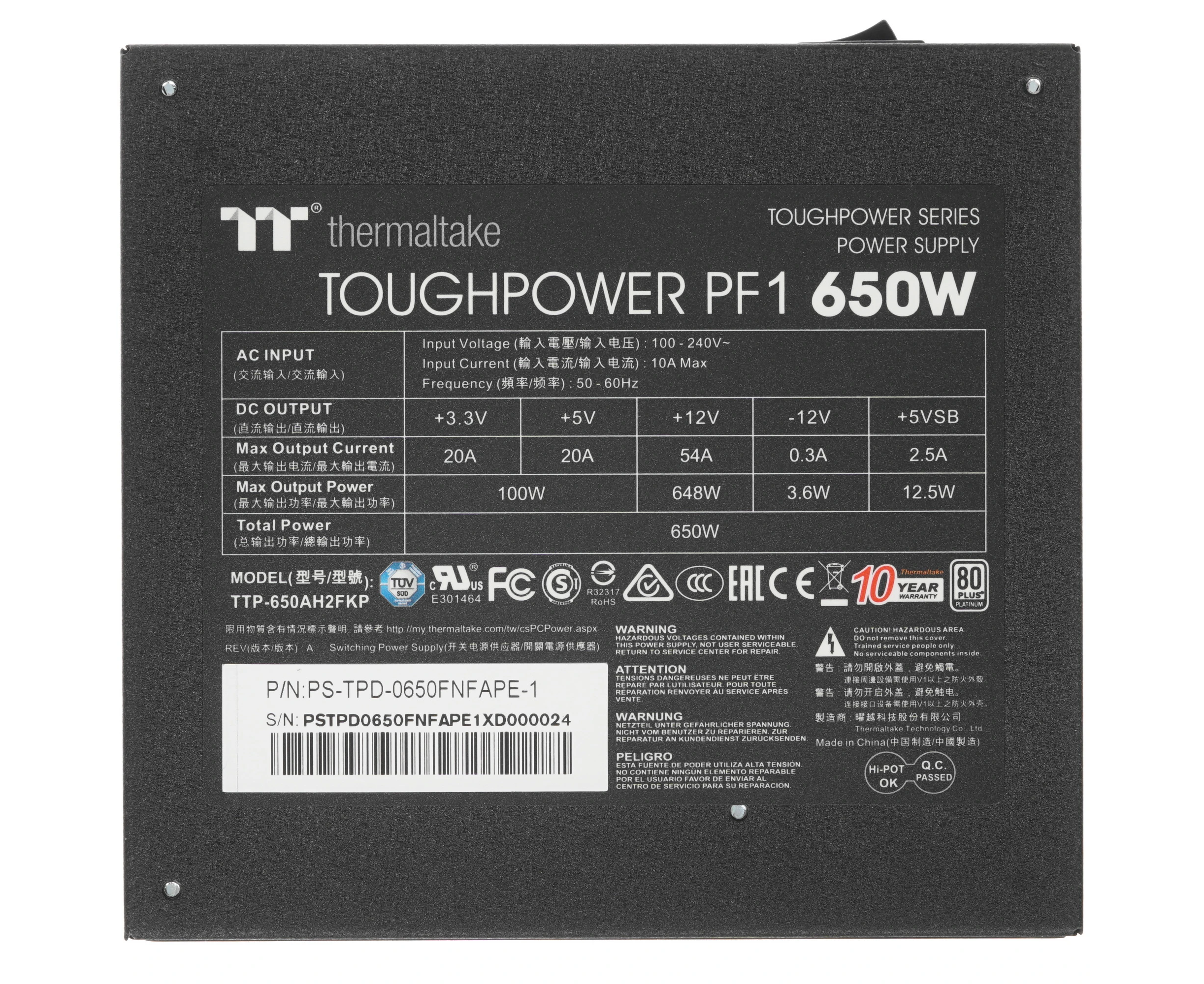 Блок питания Thermaltake Toughpower PF1 (PS-TPD-0650FNFAPE-1) ATX 650W 80+ platinum (20+4pin) APFC 140mm fan color LED 9xSATA Cab Manag RTL
