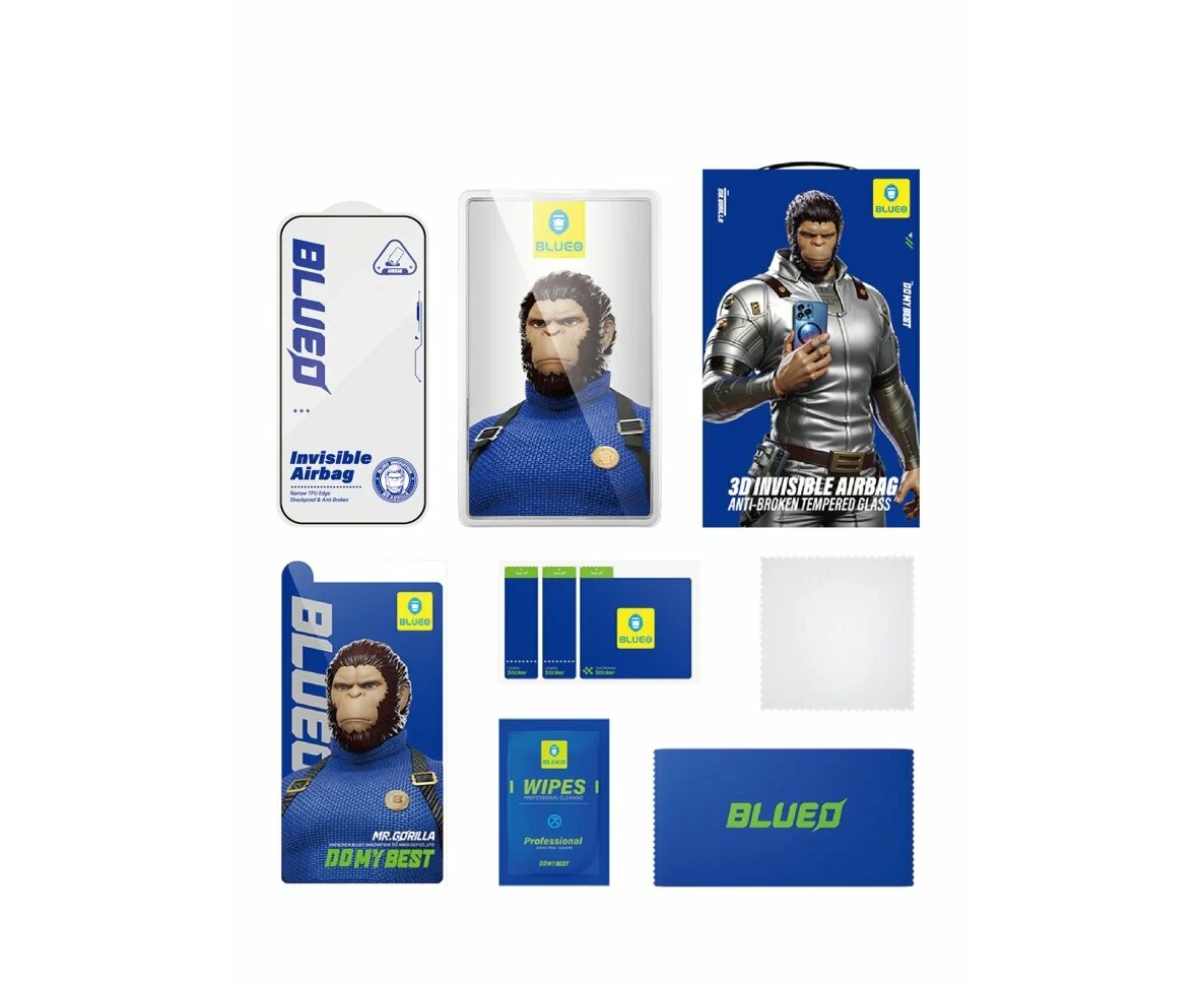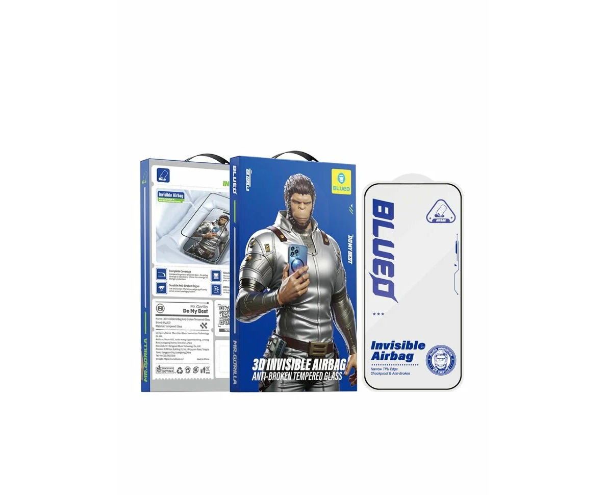 BlueO стекло для iPhone 17 Pro/17/16 Pro, 3D Invisible Airbag with Dustproof receiver Black