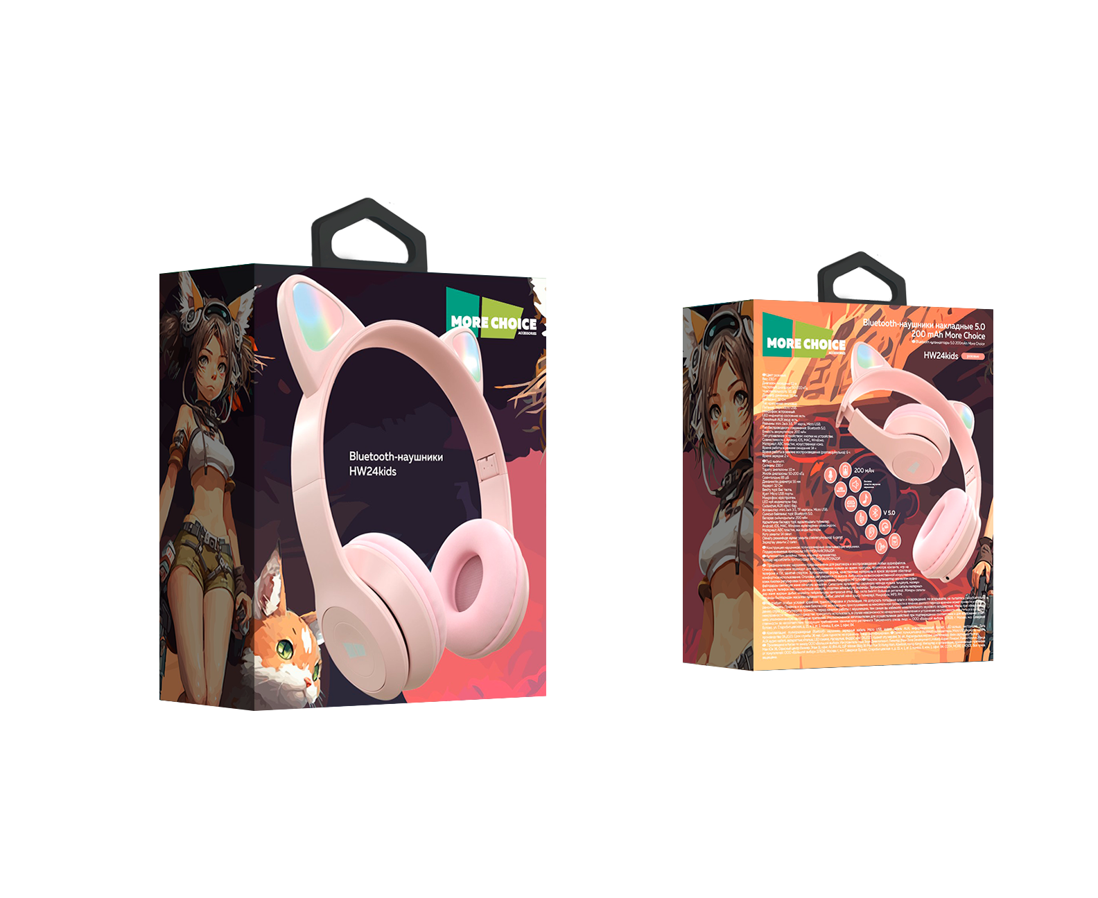 Bluetooth-наушники накладные 5.0 200mAh More choice HW24kids (Pink)