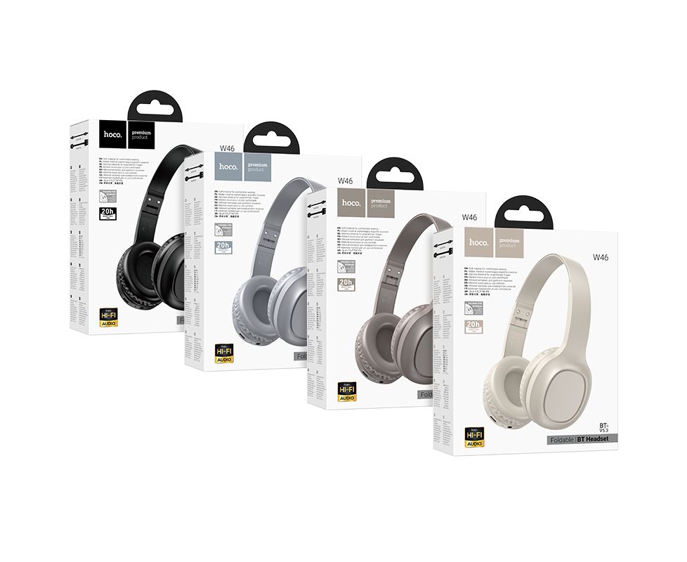 Hoco W46 Charm - комфортные и мягкие беспроводные наушники с отличным объемным звуком и встроенным микрофоном. Наушники обладают отличной автономностью: аккумулятор емкостью в 200мАч обеспечивает 20 часов работы в режиме активного использования и до 180 часов в режиме ожидания, при этом полная зарядка наушников осуществляется за 2 часа. Данная модель использует беспроводное подключение к устройству с помощью Bluetooth современной версии 5.3, а также поддерживает проводное подключение через вход AUX. Благодаря складной конструкции и небольшому весу наушники с легкостью можно брать с собой в путешествие, на работу или в спортзал – они не займут много места в сумке. Вес 109 г. Выполнены в 4 цветах.