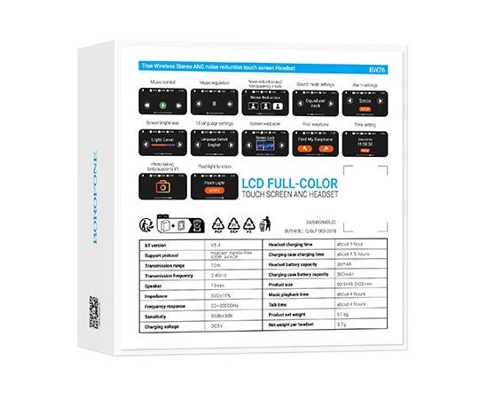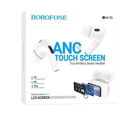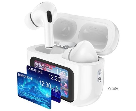Блютуз гарнитура TWS Borofone BW76/ ANC/ сенсорный экран/ Белый
