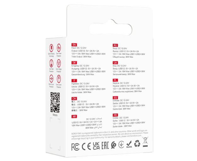 С двумя USB-портами и общей мощностью 36W, это устройство позволяет одновременно заряжать два устройства, обеспечивая быструю и эффективную зарядку благодаря стандарту QC3.0.