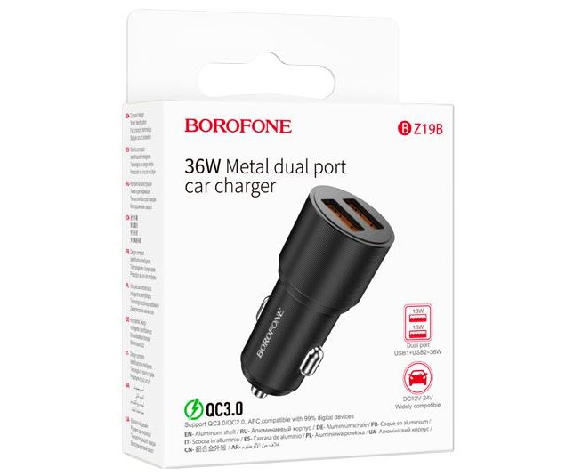 Автомобильное зарядное устройство BOROFONE BZ19B / АЗУ / Wisdom 36W с двумя портами / QC3.0 / Черный
