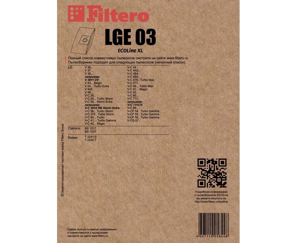 Мешки-пылесборники Filtero LGE 03 ECOLine 10 штук + микрофильтр.