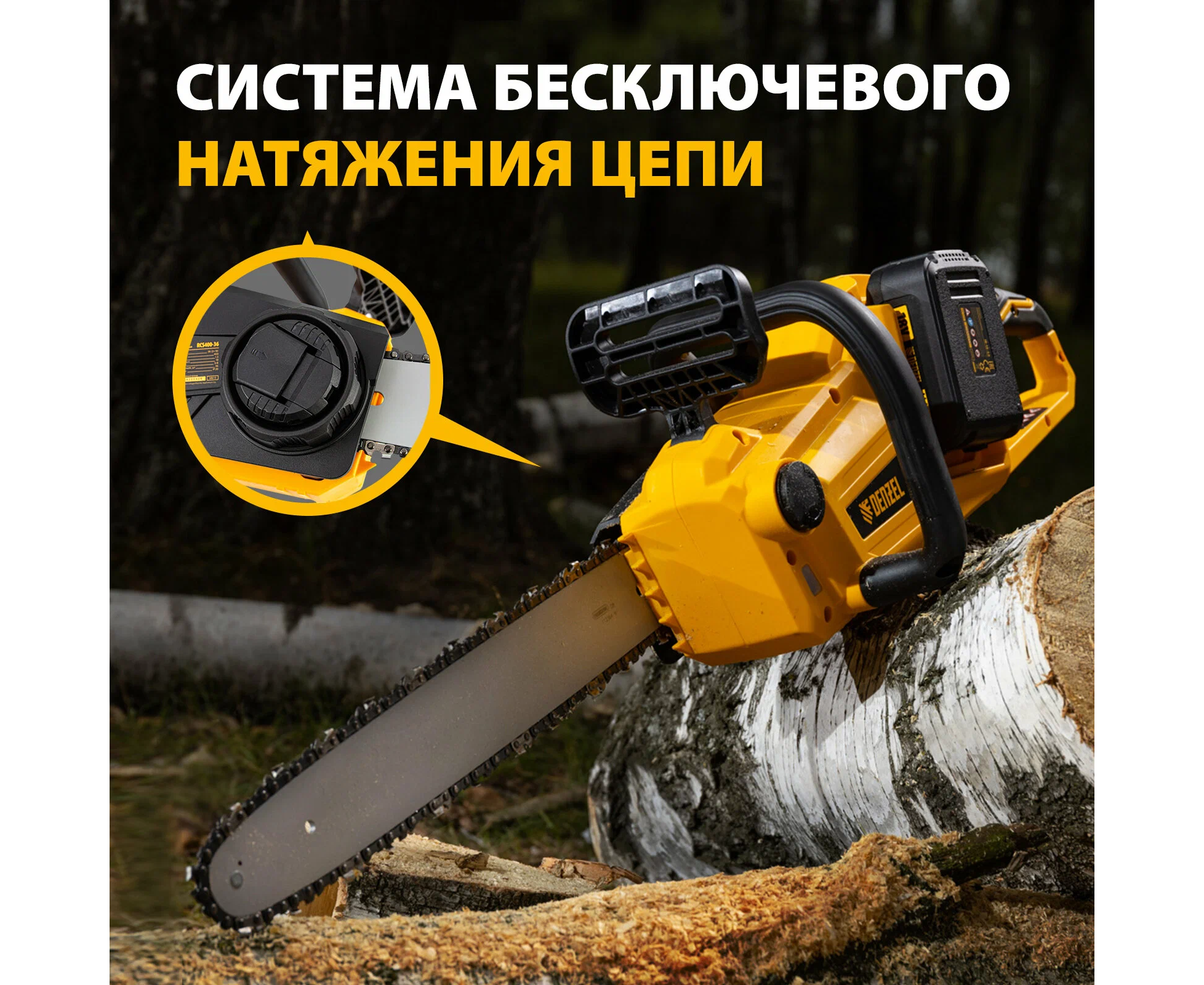 Цепная пила аккумуляторная DENZEL RCS 400-36-0, 58611 без АКБ и ЗУ