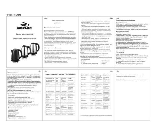 Электрический чайник ДОБРЫНЯ является прекрасным решением для тех, кто любит устраивать себе перерывы в работе на чашечку чая или кофе. Он прост в управлении и долговечен в использовании. Чайник автоматически выключается при закипании.