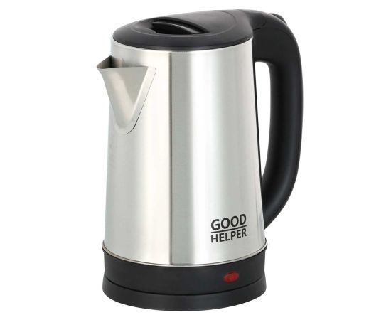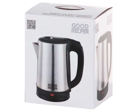 Электрочайник Goodhelper KS-18B08 с потребляемой мощностью 1500 Вт рассчитан на 1,8 л воды. Его корпус изготовлен из нержавеющей стали и дополнен ручкой из пластика, на нем предусмотрен индикатор заполненности. Размеры устройства составляют 23,5 х 14,5 х 20 см, вес — 0,6 кг. Система управления — механическая, есть подсветка, показывающая, работает ли прибор. Модель греет воду до 100°. Она отключается автоматически при закипании, а также при пустом резервуаре.