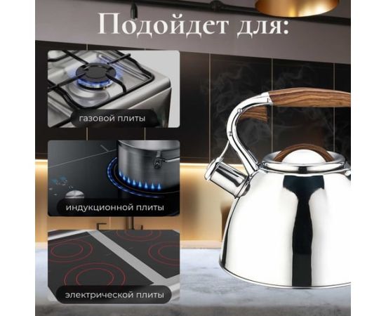 Чайник PERFECTO LINEA со свистком 3 л Ceylon 52-330001 предназначен для использования в офисе или дома.