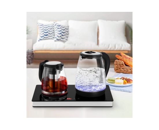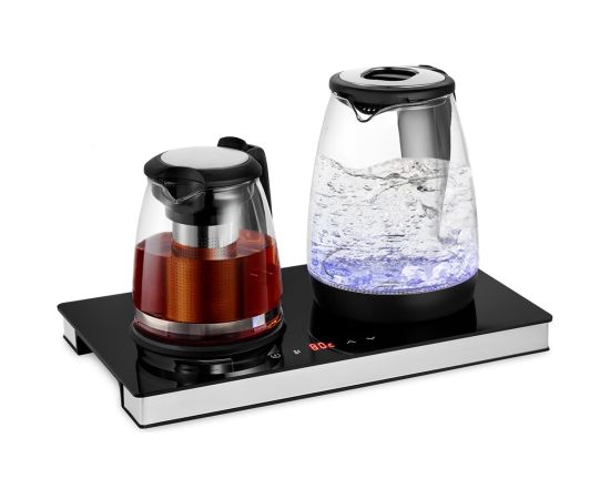 На базе находятся сенсорные кнопки для выбора температурного режима и настройки температуры нагрева. Нажатие на кнопки сопровождается звуковым сигналом. На дисплее отображается выбранная температура подогрева воды в кувшине. Автоматический режим поддержания тепла для чая — 80°С, для кофе 70°С. Ручная настройка для чая возможна от 75°С до 85°С, для кофе от 60 °С до 80°С с шагом 1°С. Прибор будет поддерживать выбранный режим в течение четырех часов, далее отключит подогрев.