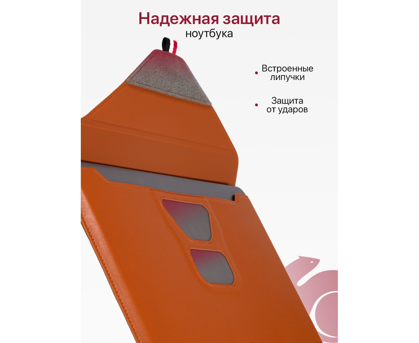 - Защита ноутбука. Твердая передняя стенка надежно защитит ноутбук от ударов и повреждений. Чехол держит форму и не мнется.