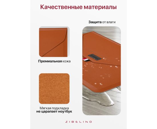 Чехол для ноутбука для MacBook Pro, Air, и планшетов Samsung, Xiaomi, KENSHI, Tecno, Teclast, Lenovo (диагональ 15.4-16.1") с регулируемой подставкой, с застежкой на липучке, коричневый (сумка портфель для макбука)