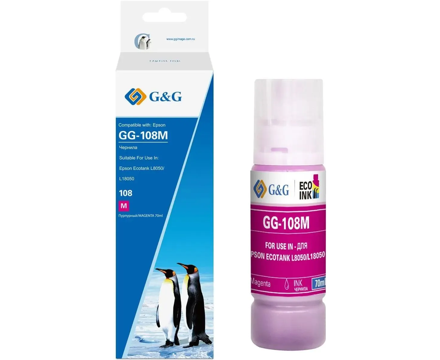 Чернила G&G GG-108M C13T09C34A пурпурный70мл для Epson Ecotank L8050/L18050
