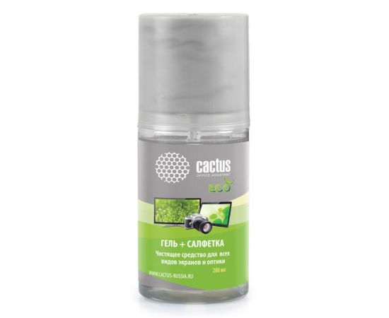 Чистящий набор (салфетка + гель) Cactus CS-S3004E для экранов и оптики 1шт 18x18см 200мл
