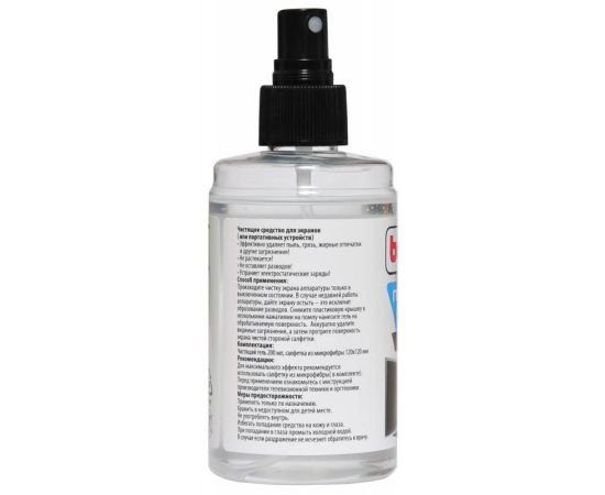 Описание: Чистящий набор состоит из геля-очистителя и салфетки из микроволокна. Предназначен для очистки экранов и оптики от грязи, пыли и отпечатков пальцев. Не оставляет разводов, не содержит спирт.