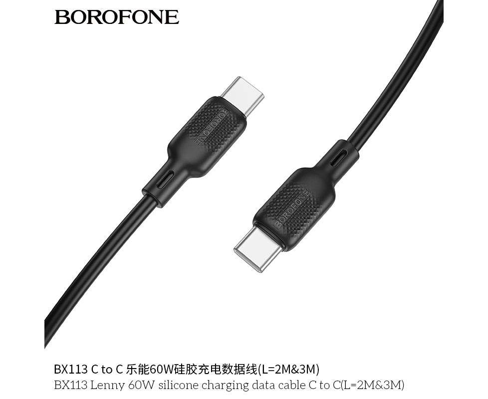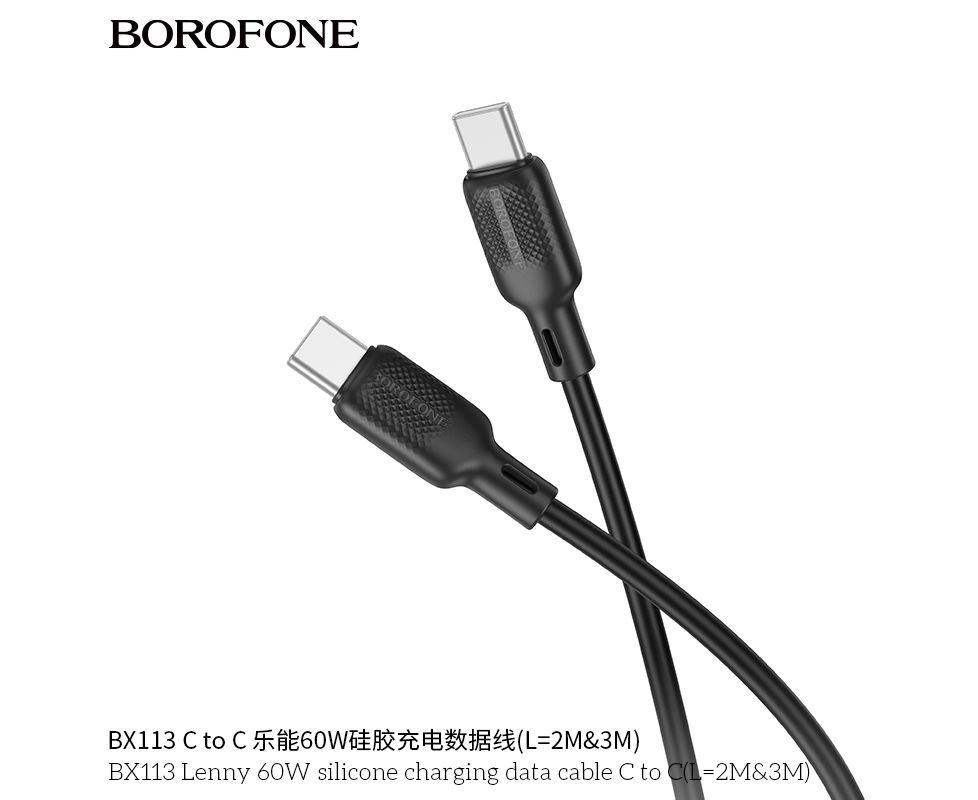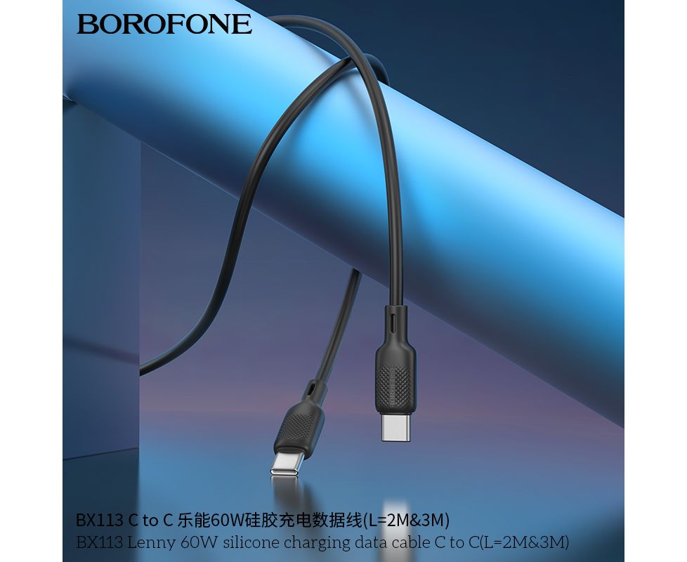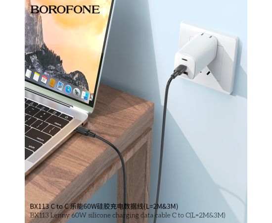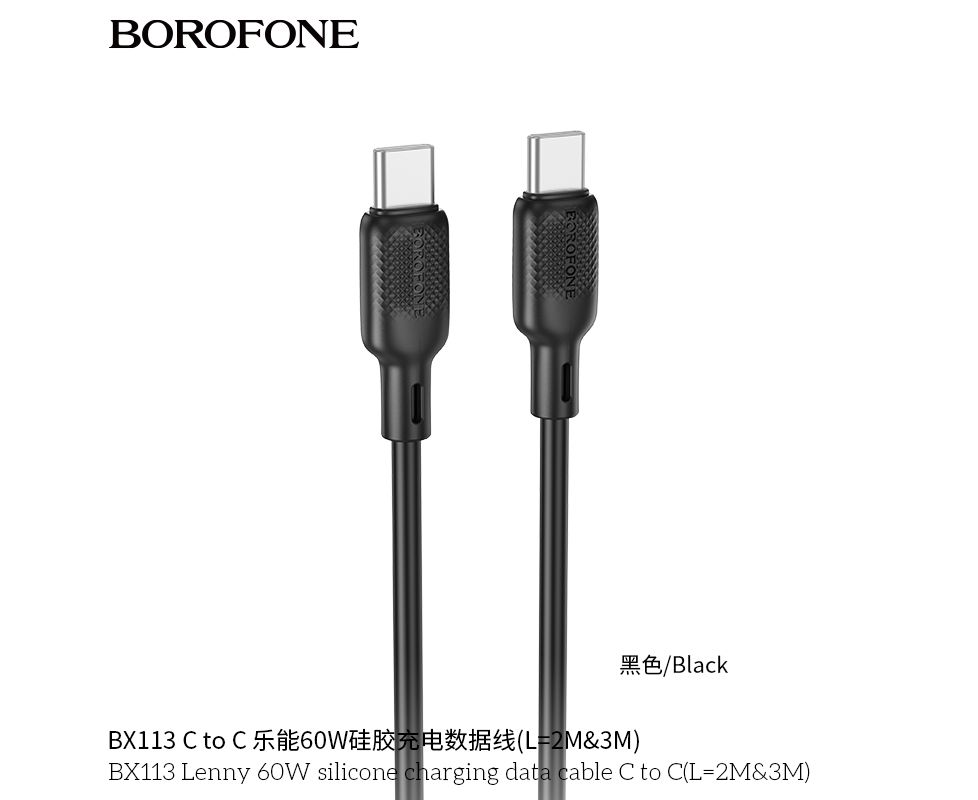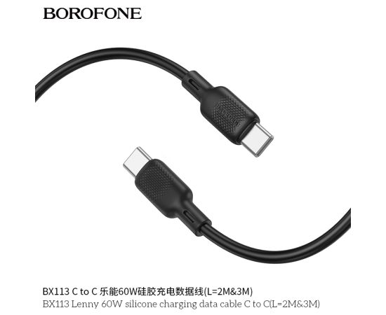 Дата-кабель BOROFONE BX113 Lenny 60W silicone charging C to C(L=3M) (черный)