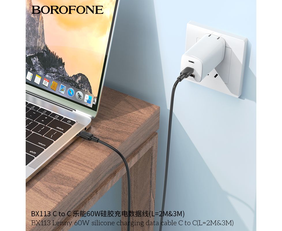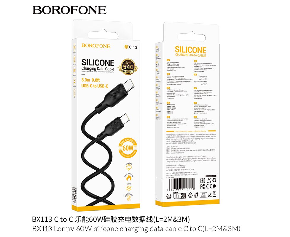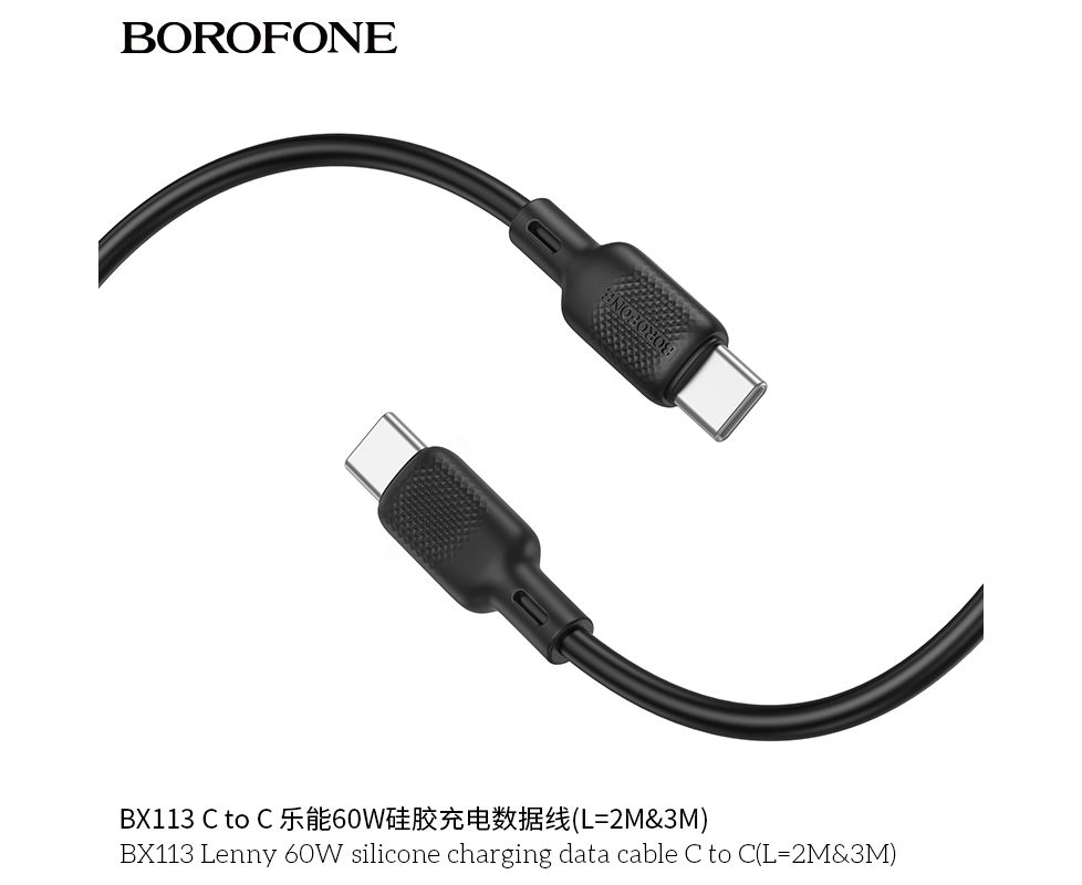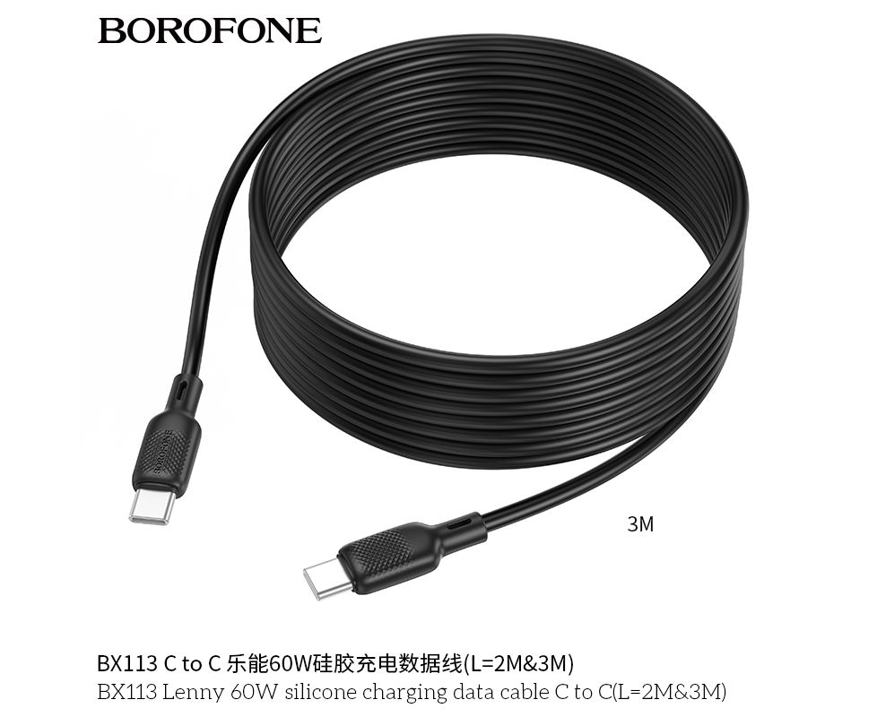 Дата-кабель BOROFONE BX113 Lenny 60W silicone charging C to C(L=3M) (черный)