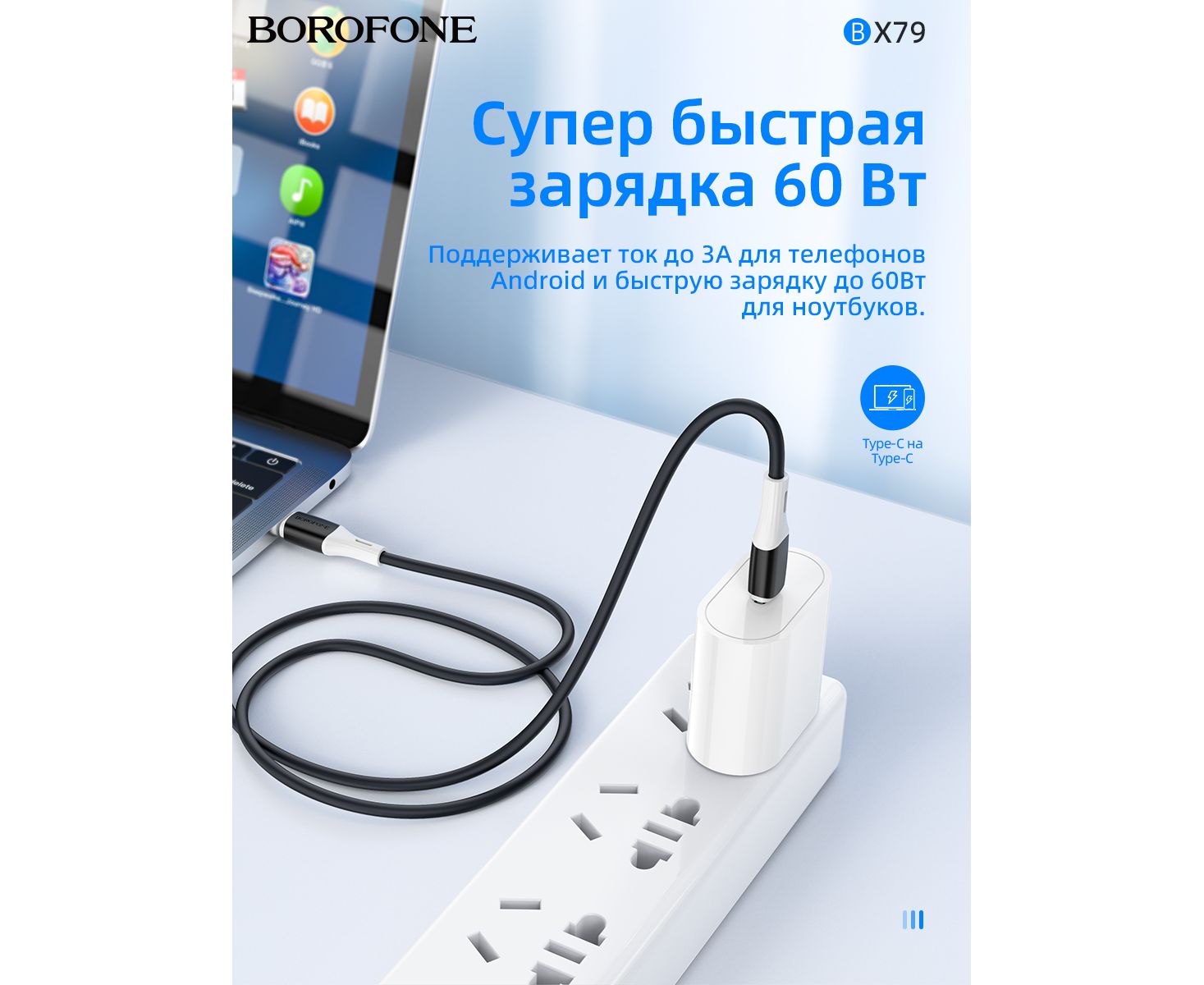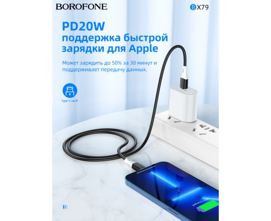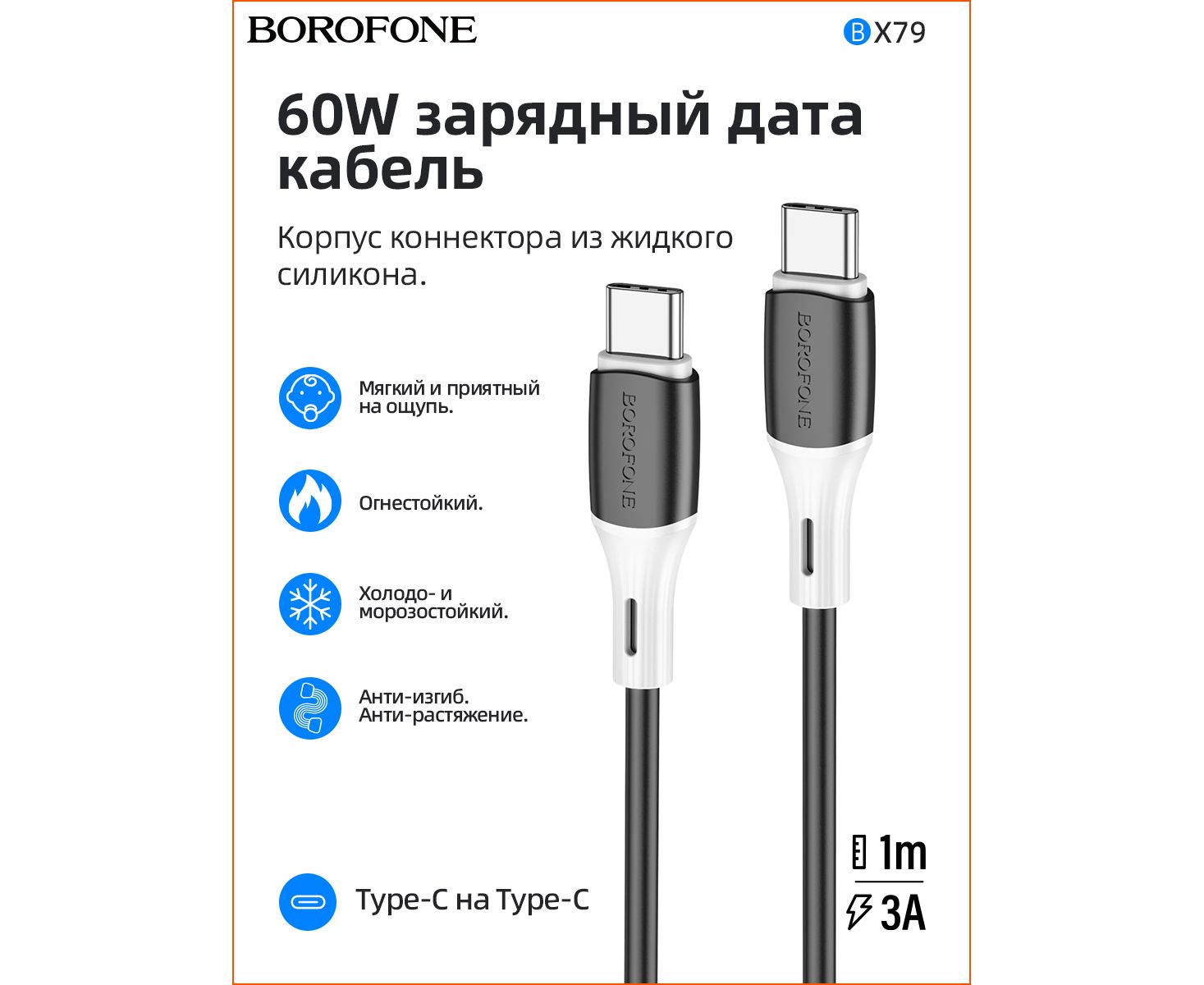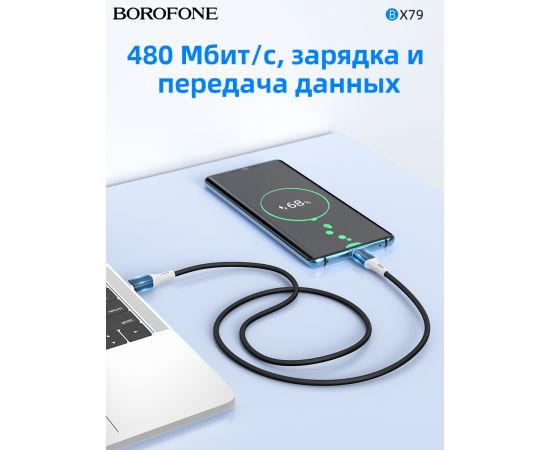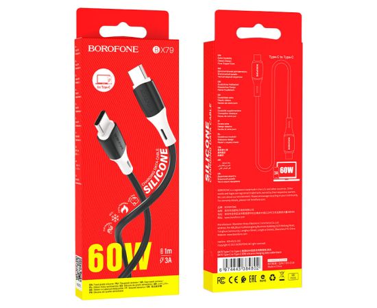 Дата-кабель BOROFONE BX79 silicone charging 60W Type-C to Type-C (черный)