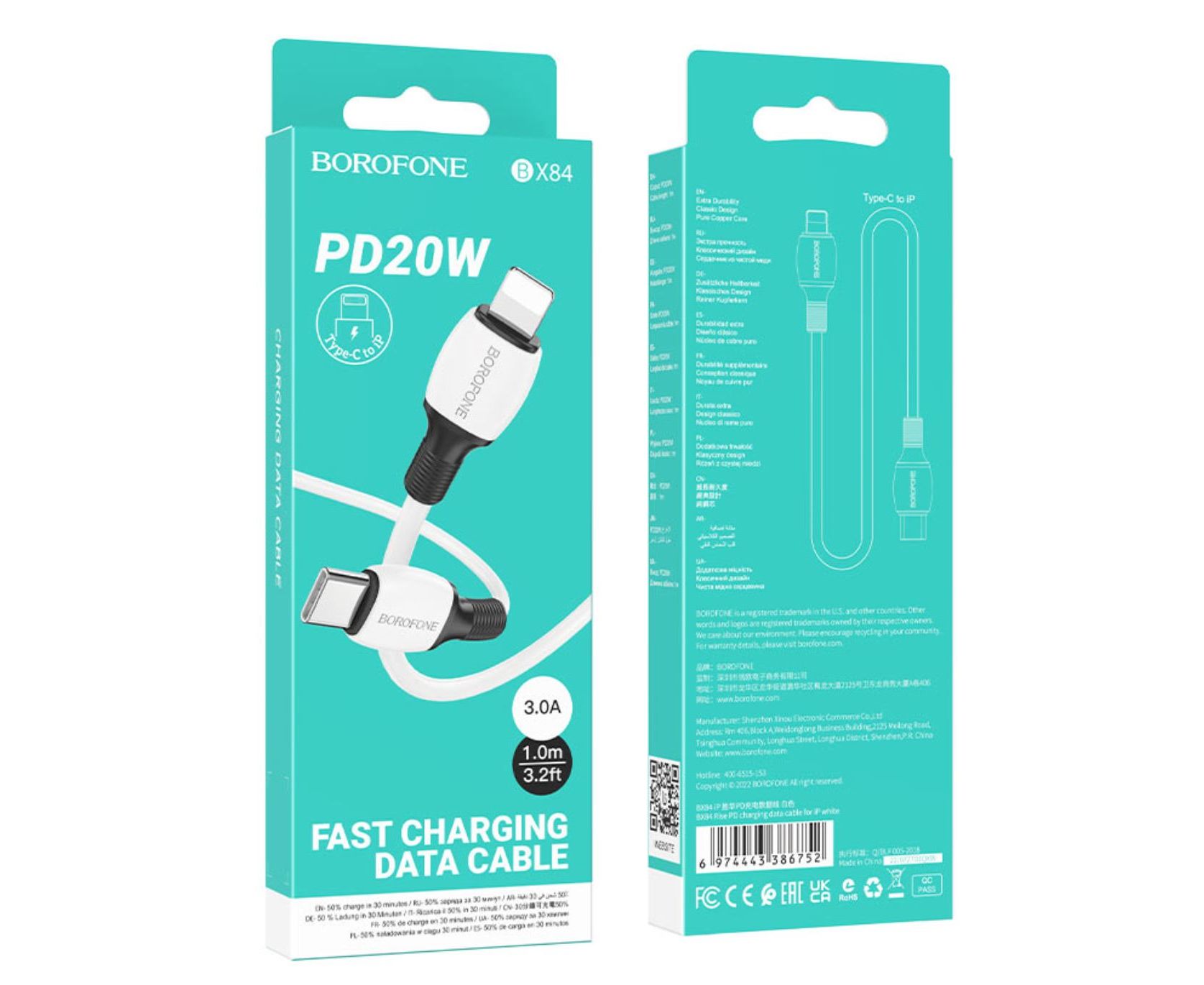 Дата-кабель BOROFONE BX84 Rise PD charging data cable Lightning 1м (белый)