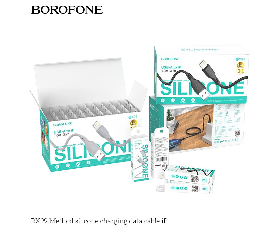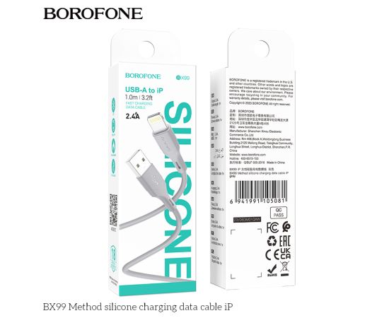 Дата-кабель BOROFONE BX99 Method silicone charging data cable iP 1м (серый)