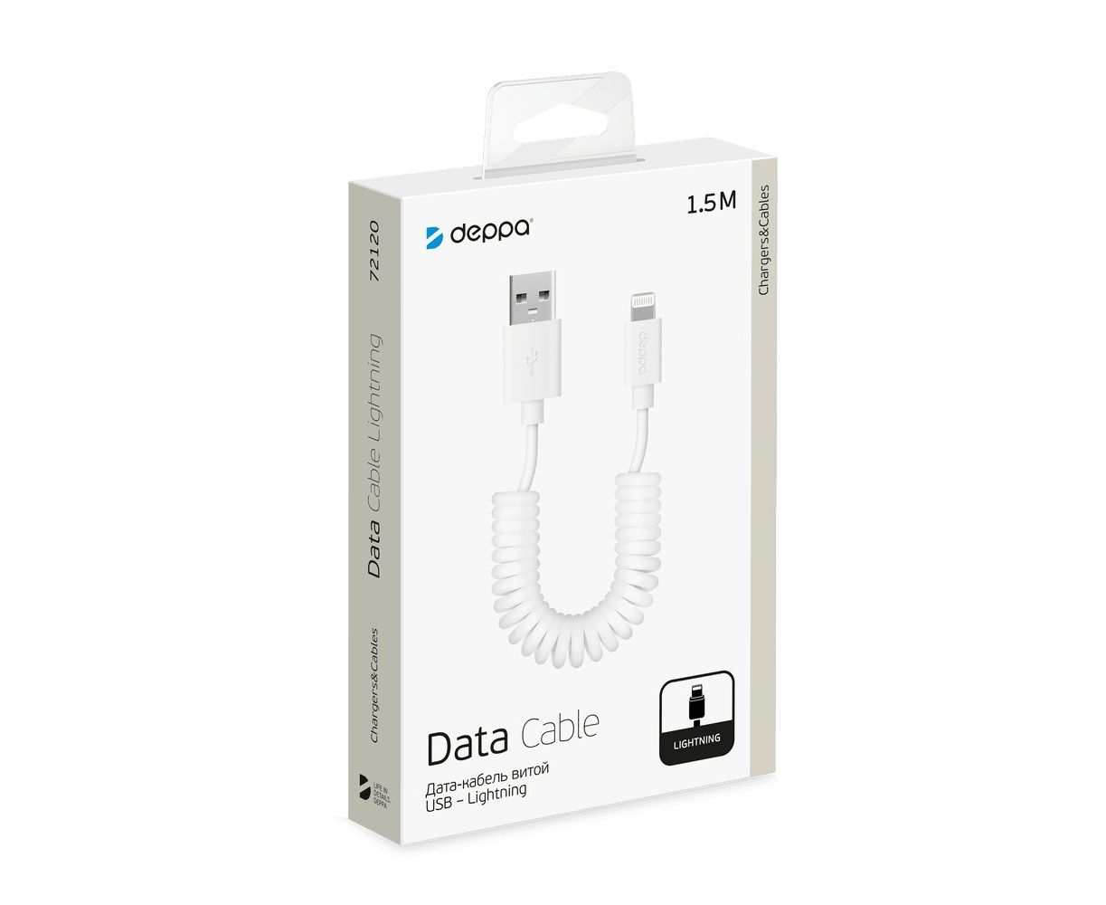 Дата-кабель Deppa USB-8-pin для Apple (72132), 1.5м, витой, белый