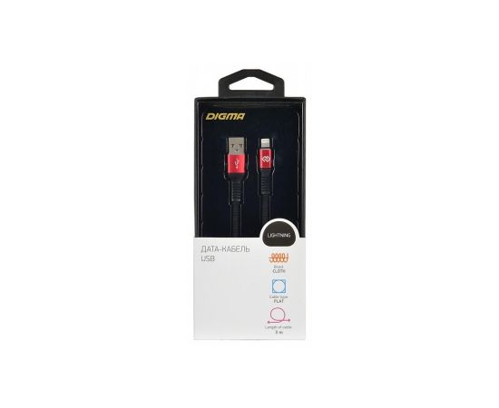 Дата-кабель Digma Lightning 3м черный