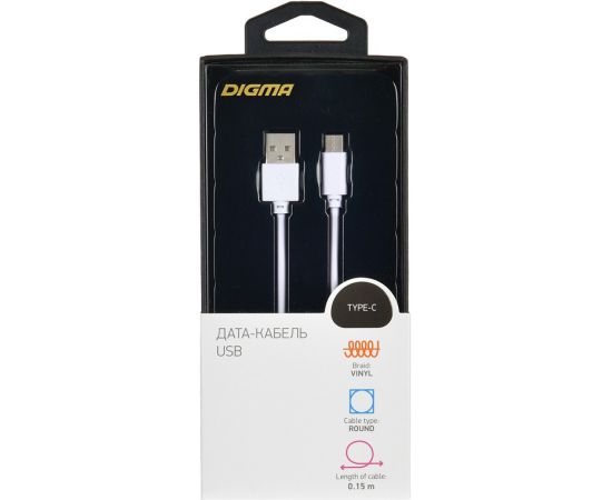 Дата-кабель Digma Type-C 0.15м белый
